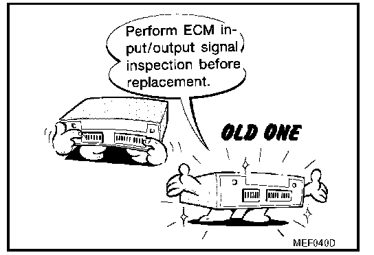 - Before replacing ECM, perform "ECM Terminals and Reference Value" inspection and make sure ECM functions properly. Refer to EC-657, "ECM Terminals and Reference Value". Pinout Values and Diagnostic Parameters