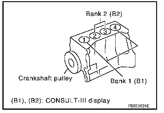 - B1 indicates bank 1 (cylinders number 1 and 4), B2 indicates bank 2 (cylinders number 2 and 3).