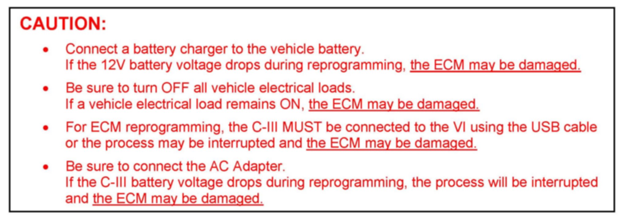 1. Connect C-III to the vehicle to begin the reprogramming procedure.