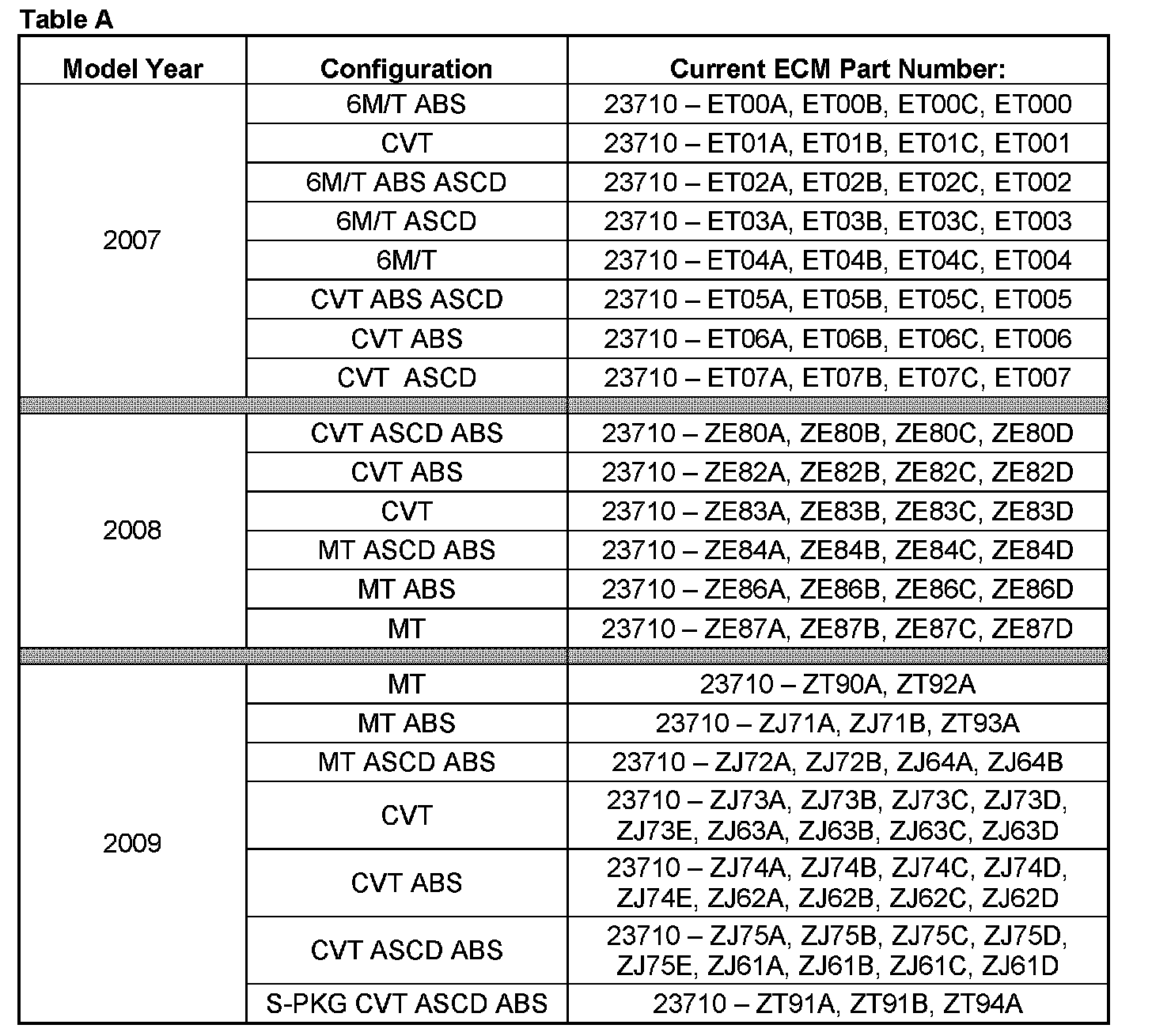 B. Compare the Part Number you wrote down to the numbers in the Current ECM Part Number column in Table A.