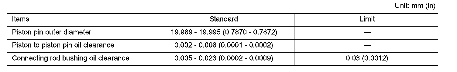 (Piston to piston pin oil clearance) = (Piston pin hole diameter) - (Piston pin outer diameter)