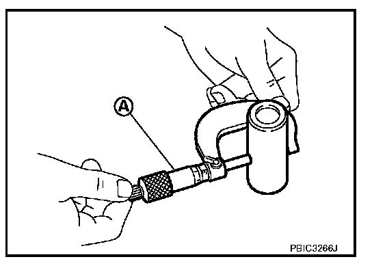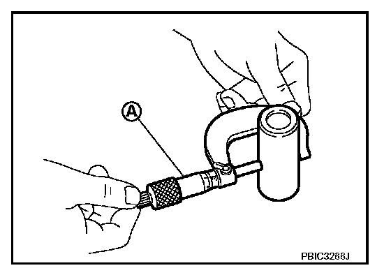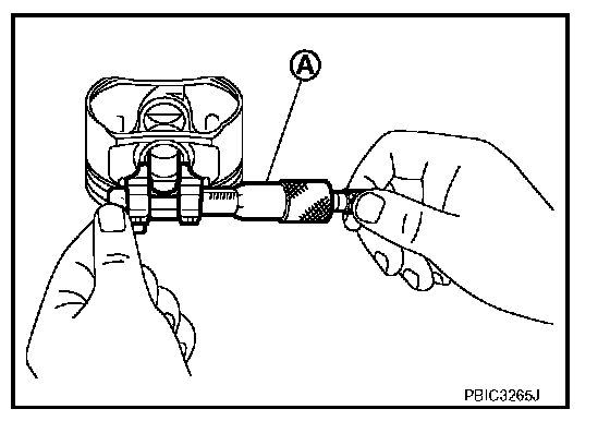 Measure the outer diameter of piston pin with a micrometer (A).