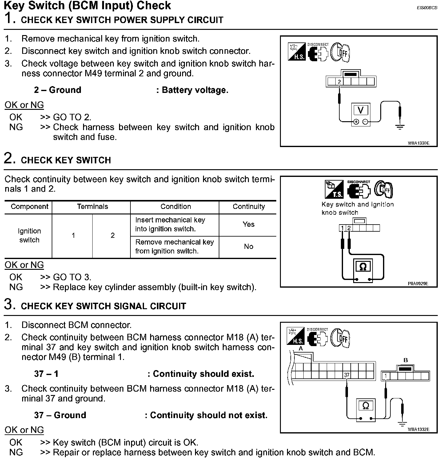 Key Switch (BCM Input) Check: