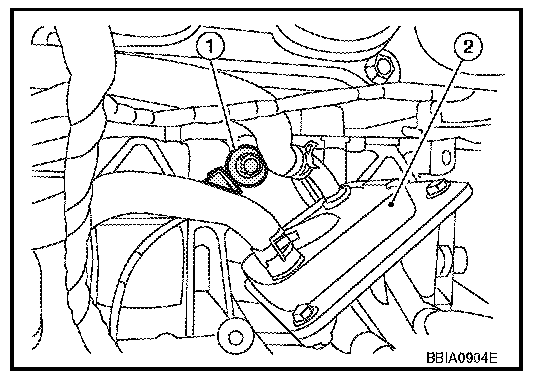 The knock sensor (1) is attached to the cylinder block. It senses engine knocking using a piezoelectric element. A knocking vibration from the cylinder block is sensed as vibrational pressure. This pressure is converted into a voltage signal and sent to the ECM.