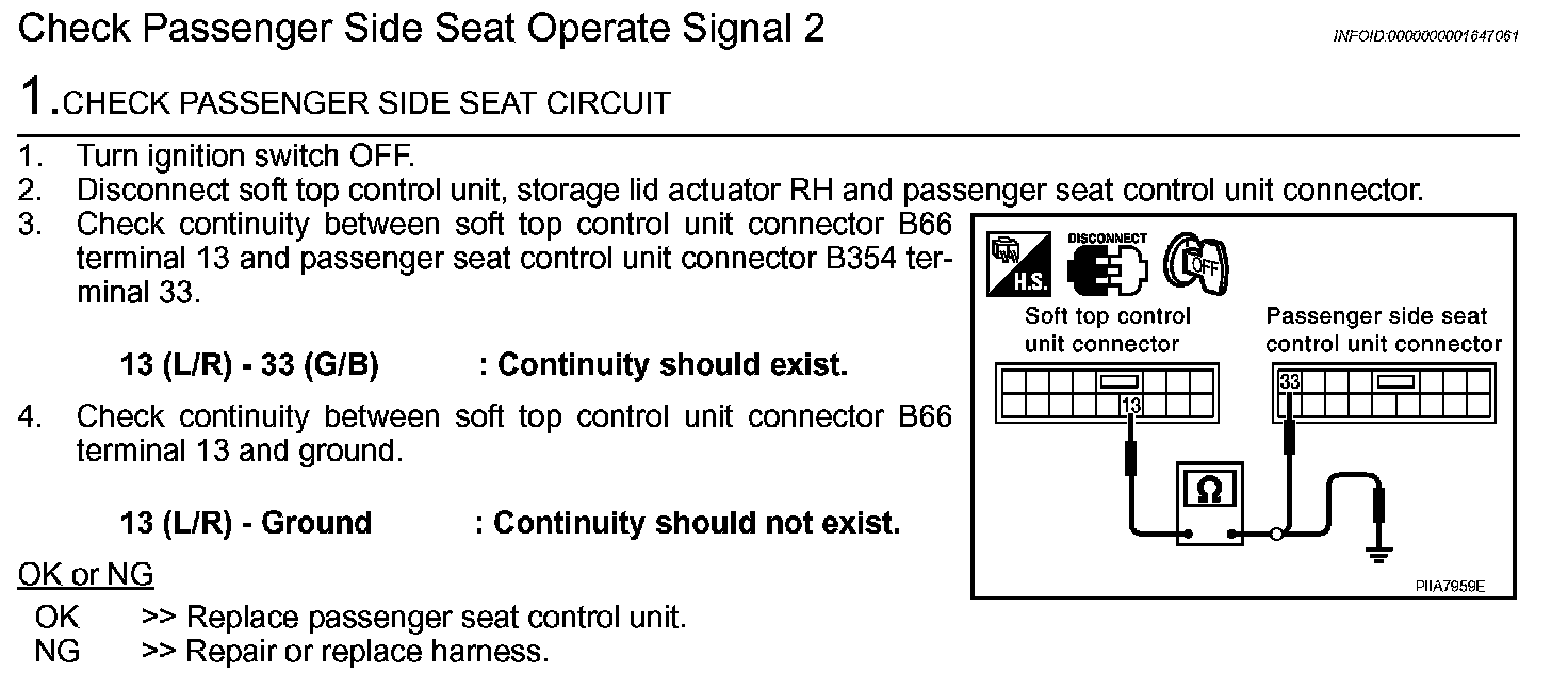 CHECK PASSENGER SIDE SEAT OPERATE SIGNAL 2