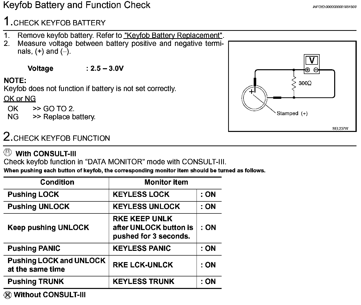 Keyfob Battery and Function Check