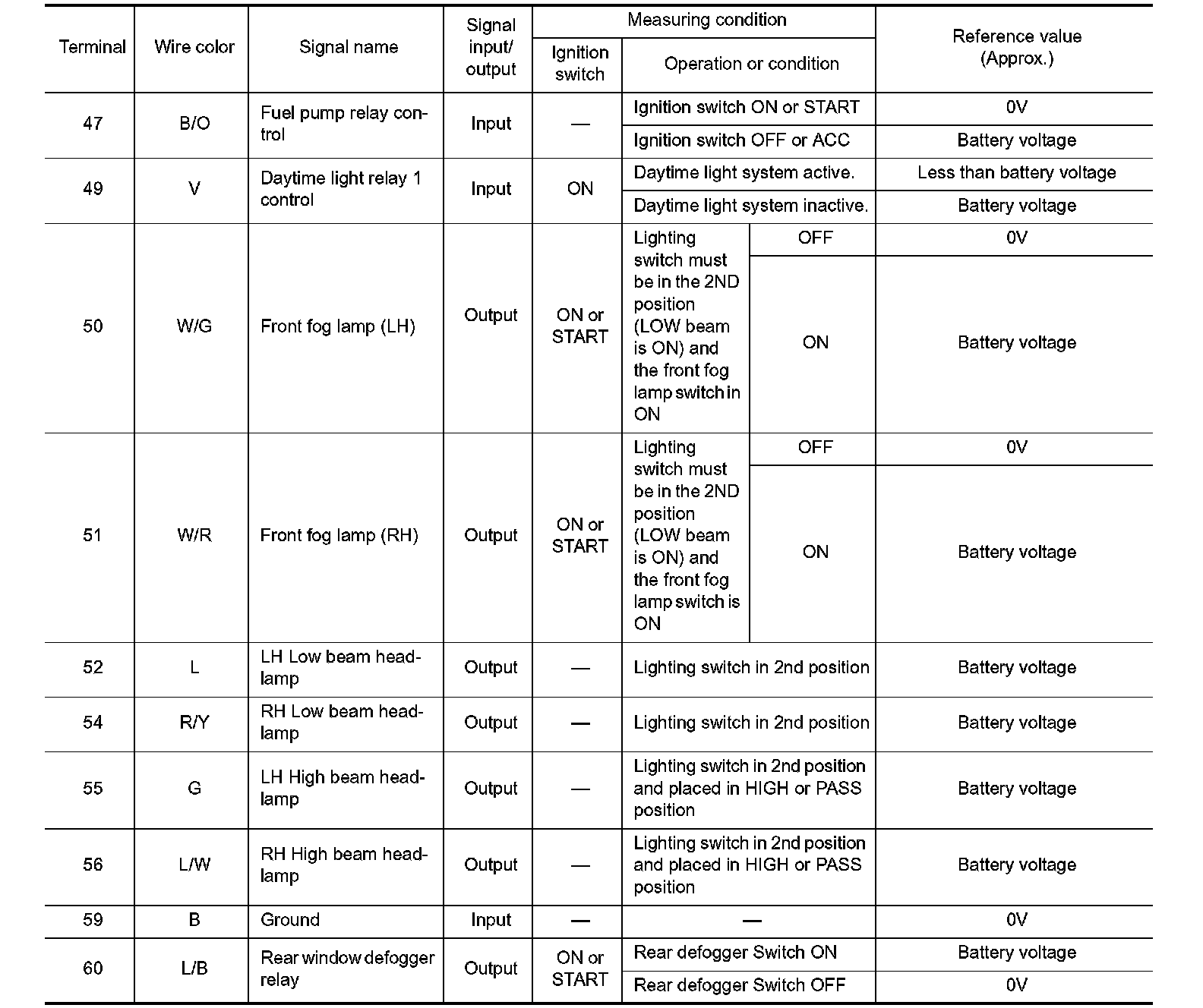 Terminal And Reference Value For IPDM E/R (Part 2):