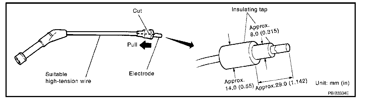 2. Connect No. 4 ignition coil (1) and No. 4 spark plug with suitable high-tension wire (A) as shown, and attach timing light clamp (B) to this wire.