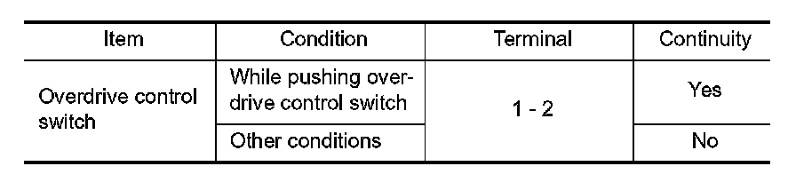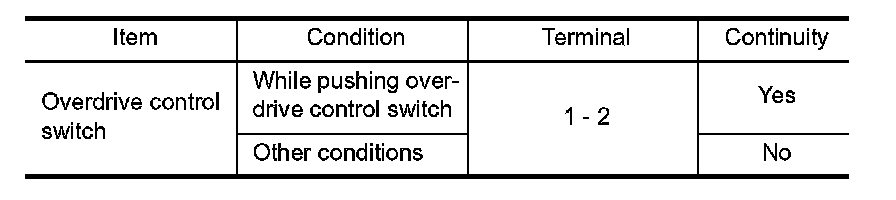 6.CHECK OVERDRIVE CONTROL SWITCH CIRCUIT WITHOUT INTELLIGENT KEY