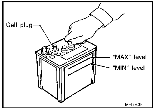 CHECKING ELECTROLYTE LEVELWARNING: Do not allow battery fluid to come in contact with skin, eyes, fabrics, or painted surfaces. After touching a battery, do not touch or rub your eyes until you have thoroughly washed your hands. If acid contacts eyes, skin or clothing, immediately flush with water for 15 minutes and seek medical attention.