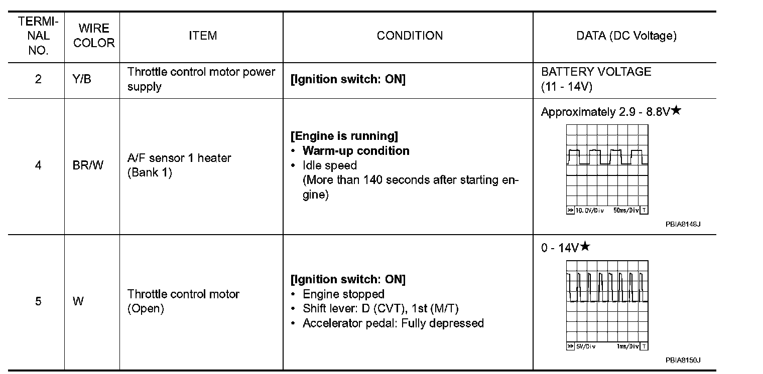CAUTION: Do not use ECM ground terminals when measuring input/output voltage. Doing so may result in damage to the ECMs transistor. Use a ground other than ECM terminals, such as the ground.