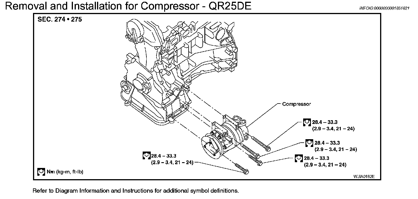 Removal and Installation for Compressor - QR25DE
