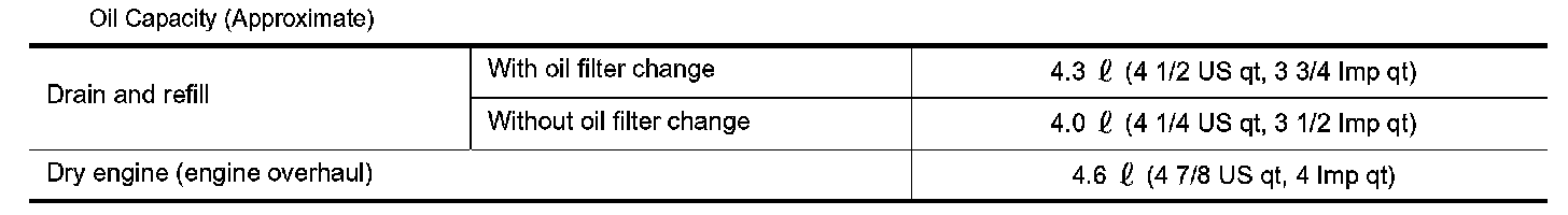 ^ The refill capacity depends on the oil temperature and drain time. Use these specifications for reference only.