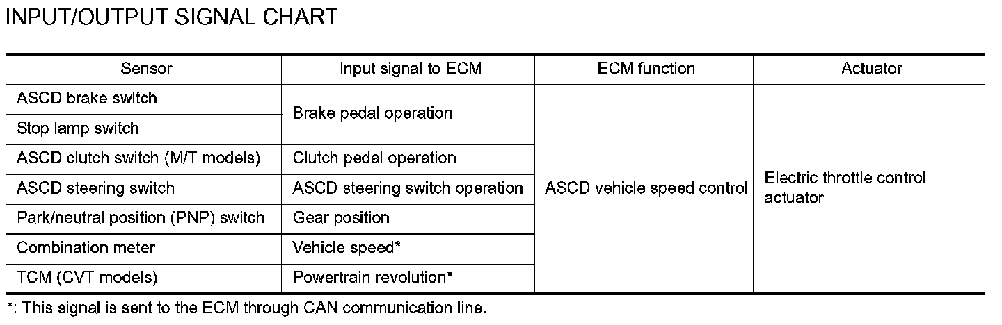 When the ECM detects any of the following conditions, the ECM will cancel the cruise operation and inform the driver by blinking indicator lamp.