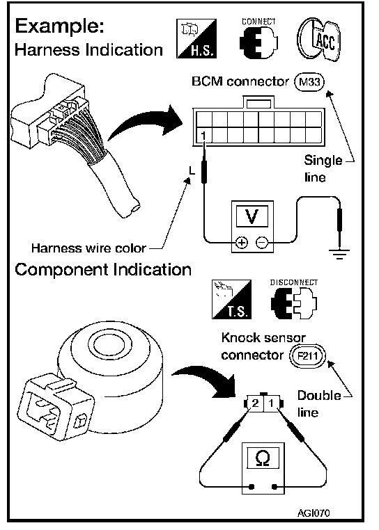 - Certain systems and components, especially those related to OBD, may use a new style slide-locking type harness connector. For description and how to disconnect, refer to Power Supply, Ground & Circuit Elements, "Description", "HARNESS CONNECTOR".