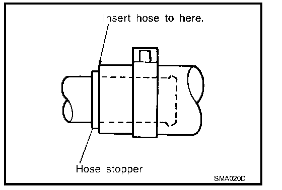 - To reinstall the rubber hose securely, make sure that hose insertion length and orientation is correct. (If tube is equipped with hose stopper, insert rubber hose into tube until it butts up against hose stopper.)