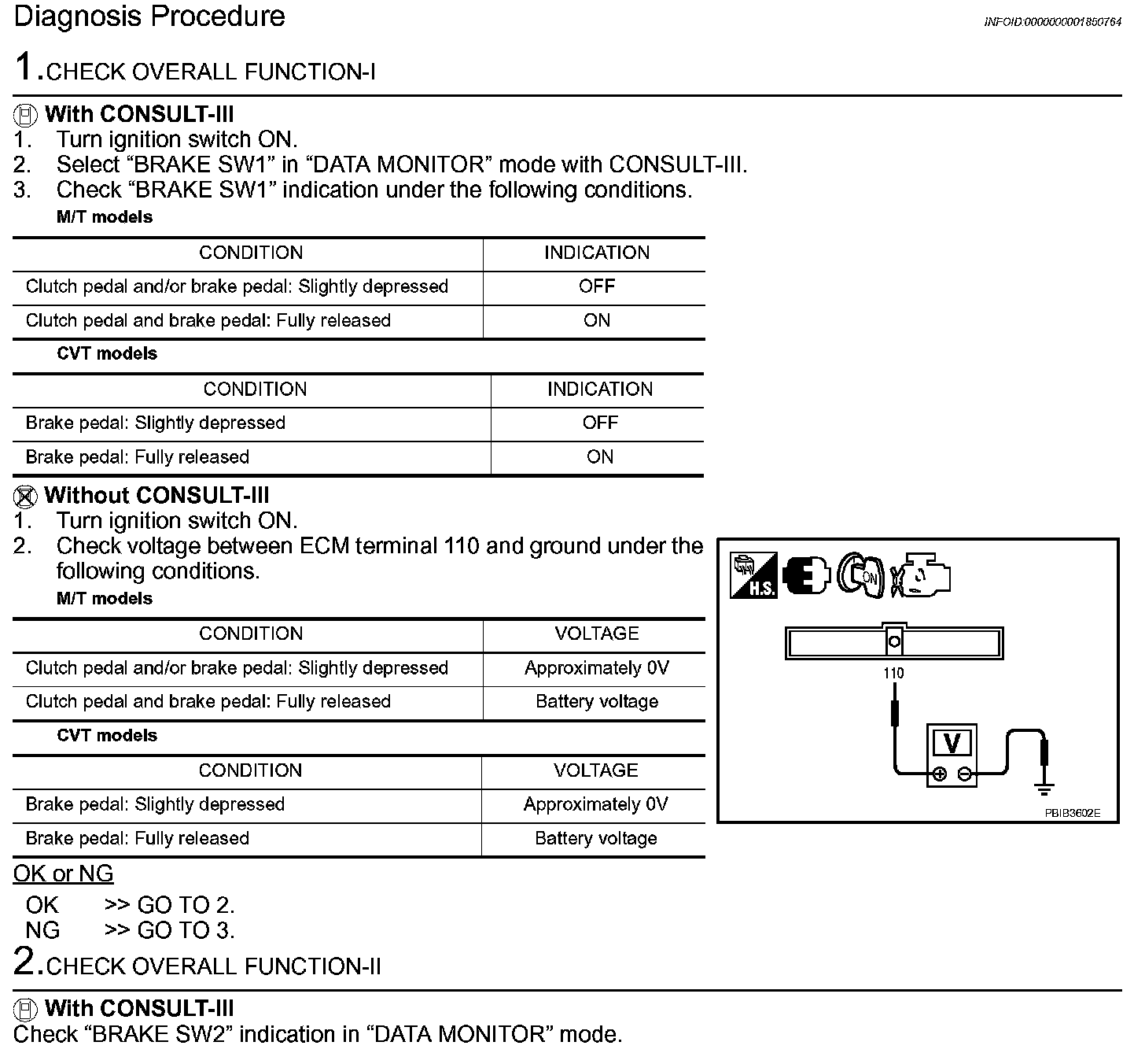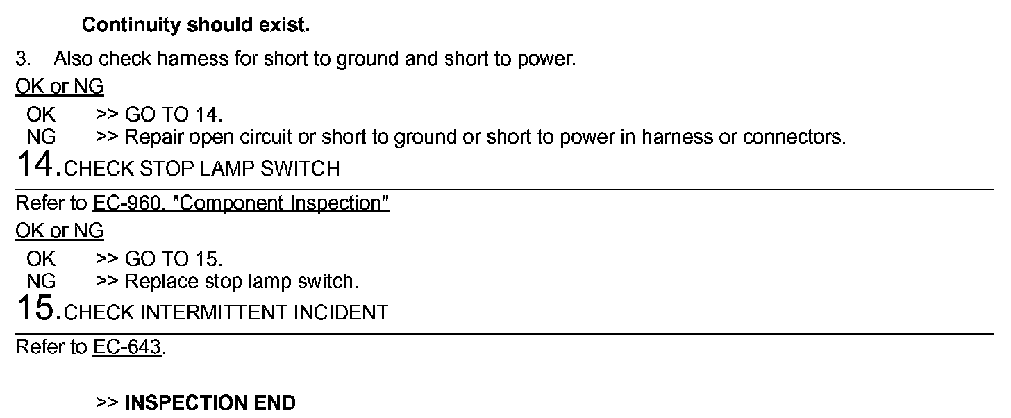 If NG, adjust stop lamp switch installation, and perform step 3 again.
