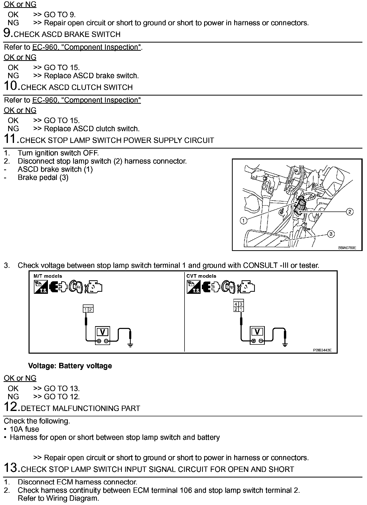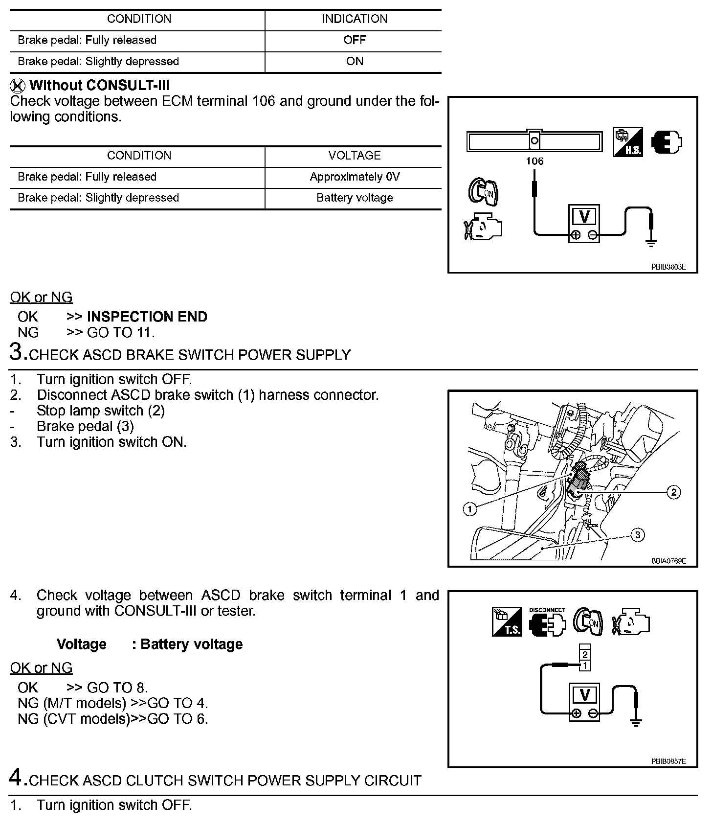If NG, adjust ASCD brake switch installation, and perform step 3 again.