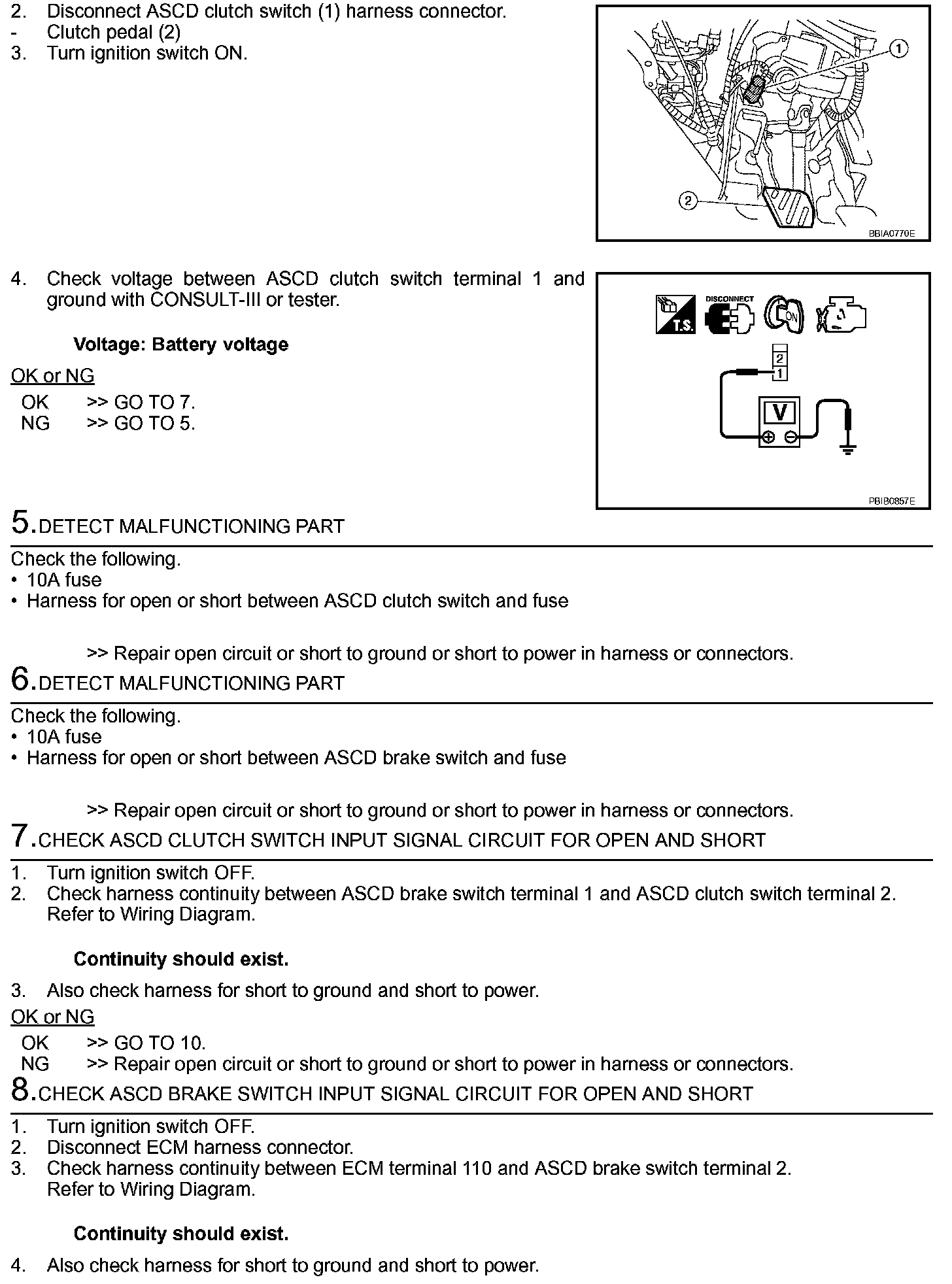 If NG, adjust ASCD clutch switch installation, and perform step 3 again.