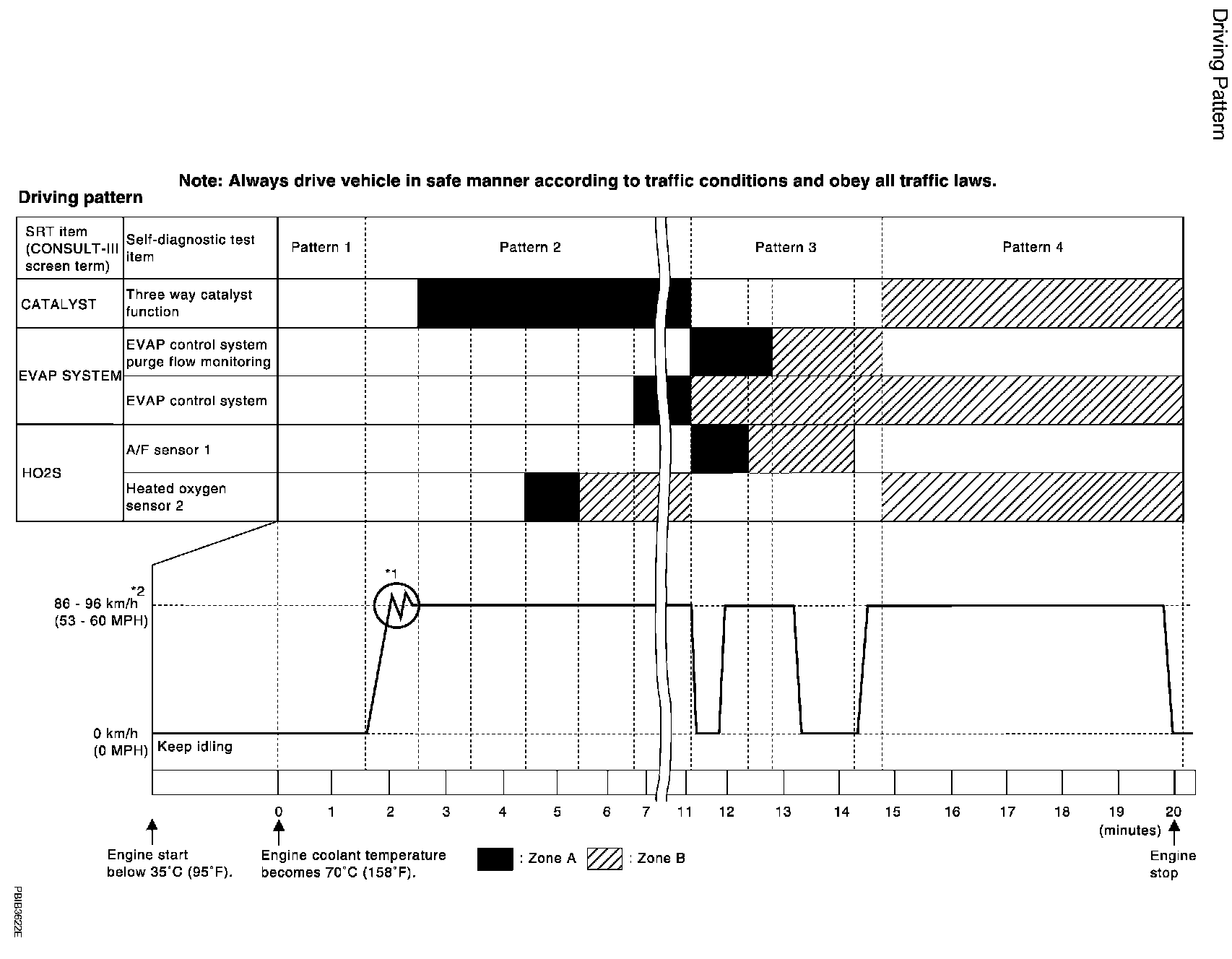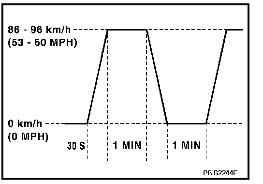*1: Depress the accelerator pedal until vehicle speed is 90 km/h (56 MPH), then release the accelerator pedal and keep it released for more than 10 seconds. Depress the accelerator pedal until vehicle speed is 90 km/h (56 MPH) again.