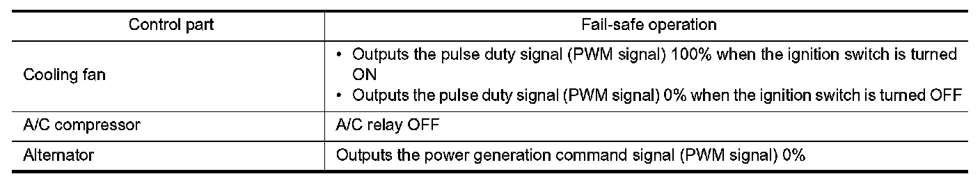 When CAN communication with ECM and BCM is impossible, IPDM E/R performs fail-safe control. After CAN communication recovers normally, it also returns to normal control.