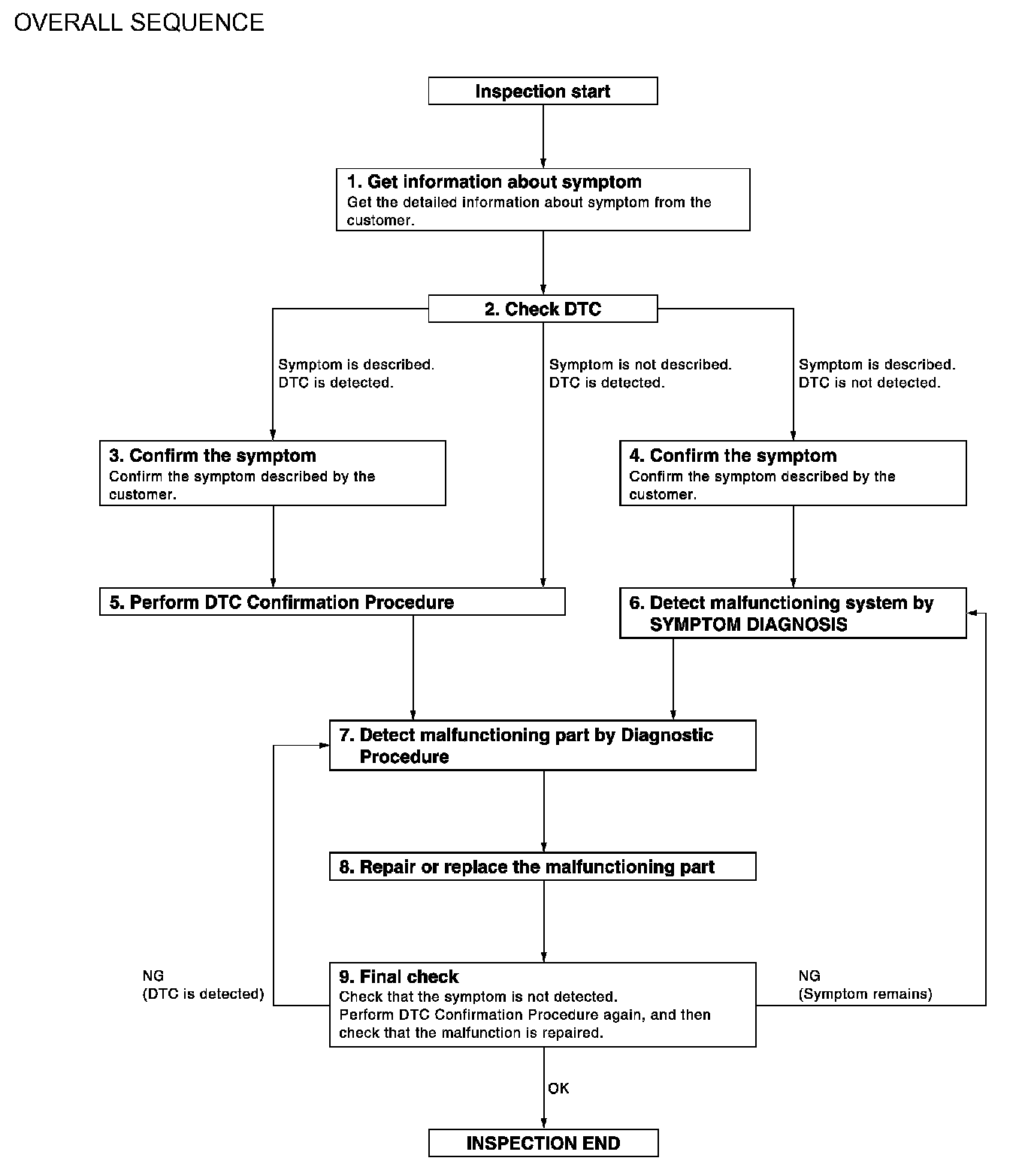 When symptom was described by the customer, refer to confirmed symptom in step 3 or 4, and check that the symptom is not detected.