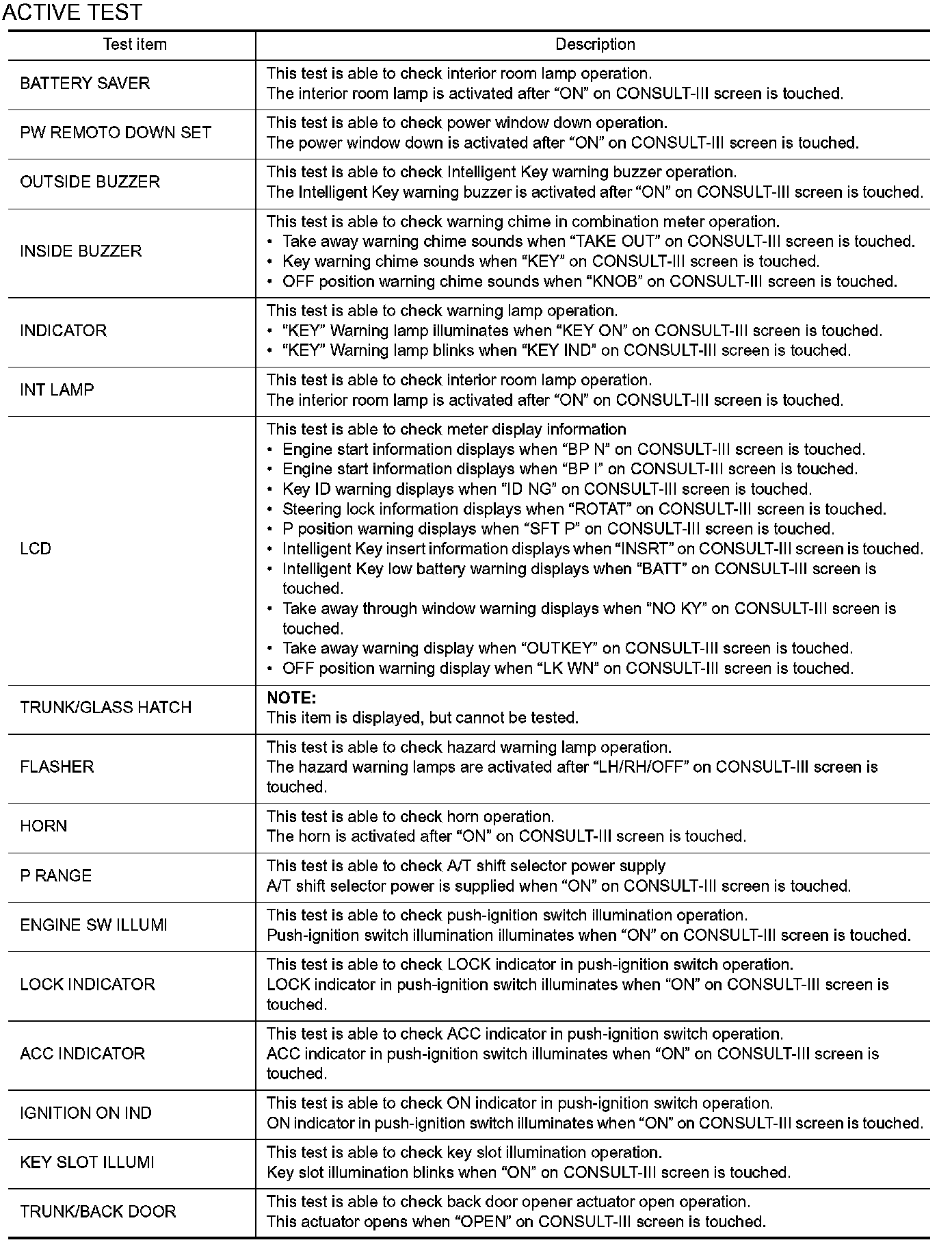 INTELLIGENT KEY : CONSULT-III Function (BCM - INTELLIGENT KEY)