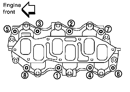 Intake ManifoldIf stud bolts were removed from cylinder head, install them and tighten to the specified torque.