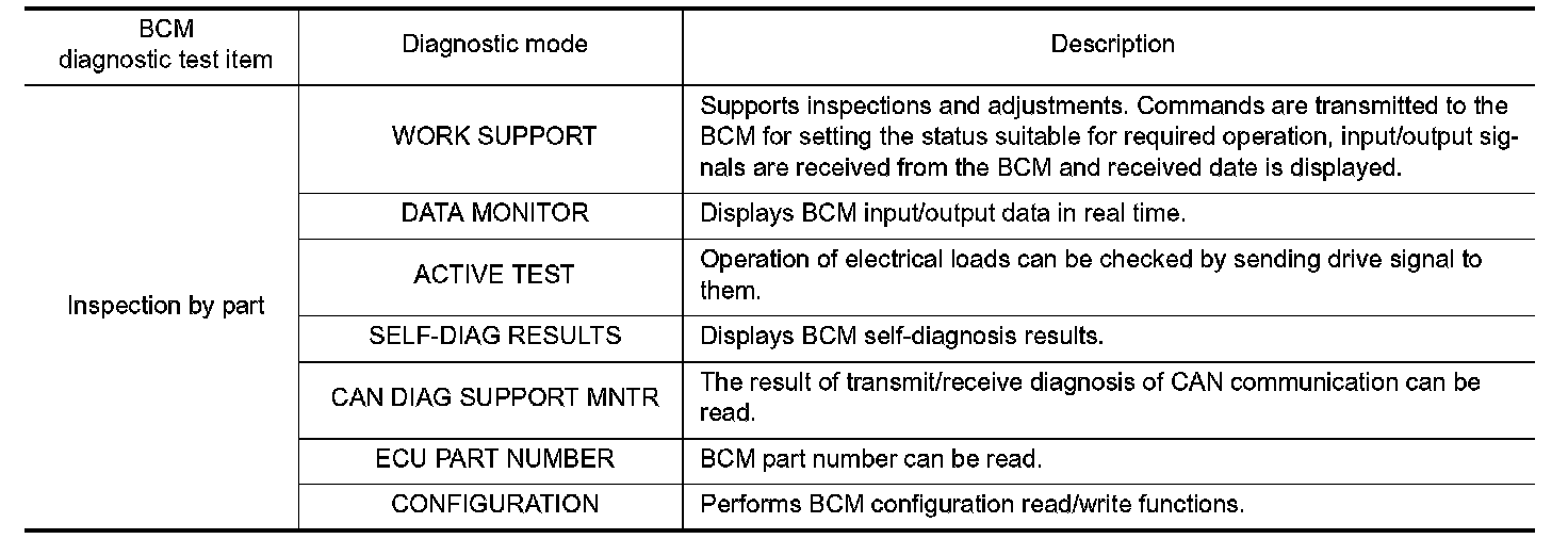 CONSULT-III can display each diagnostic item using the diagnostic test modes shown following.