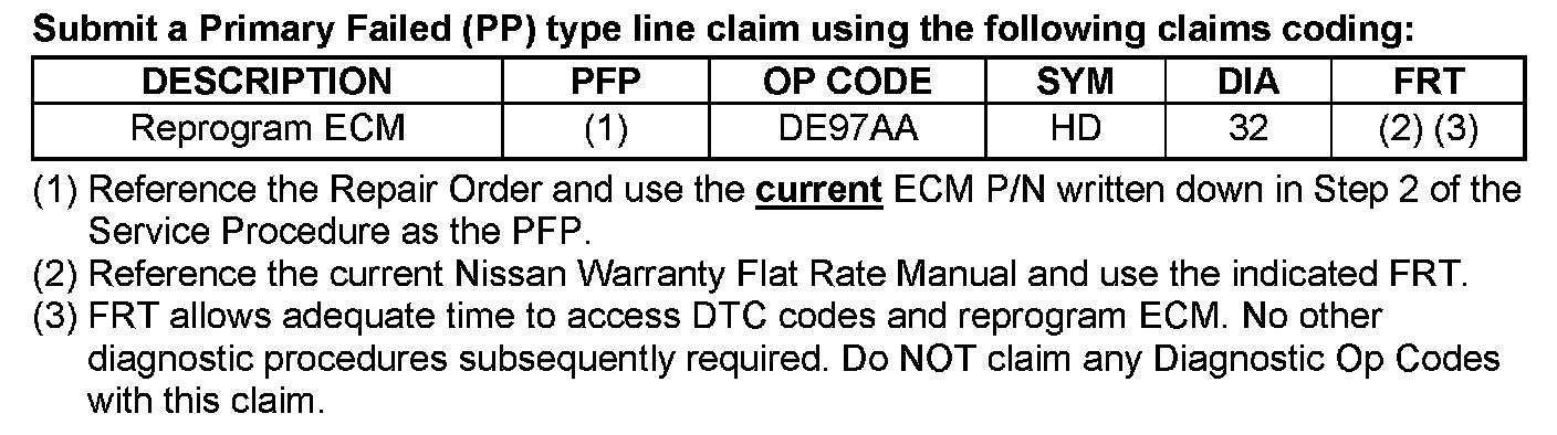 ^ Diagnosis and repairs beyond ECM reprogramming are not covered by this bulletin.