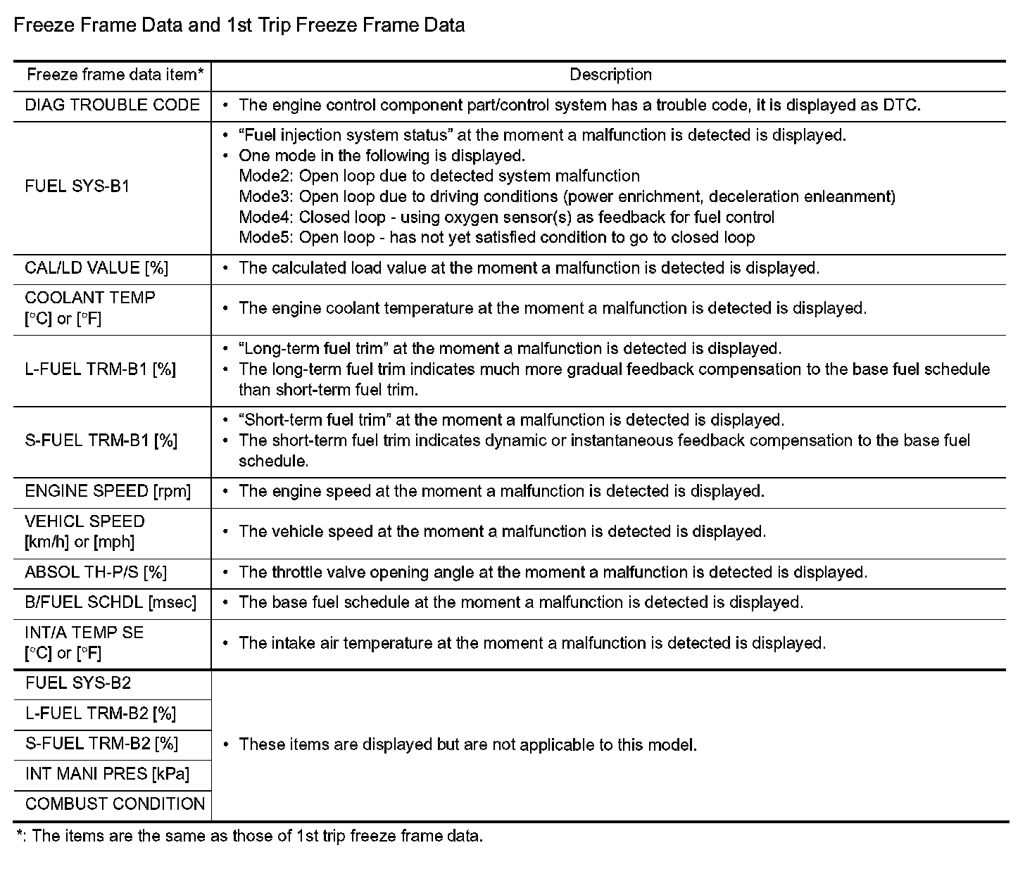 Regarding items of DTC and 1st trip DTC, refer to For California.