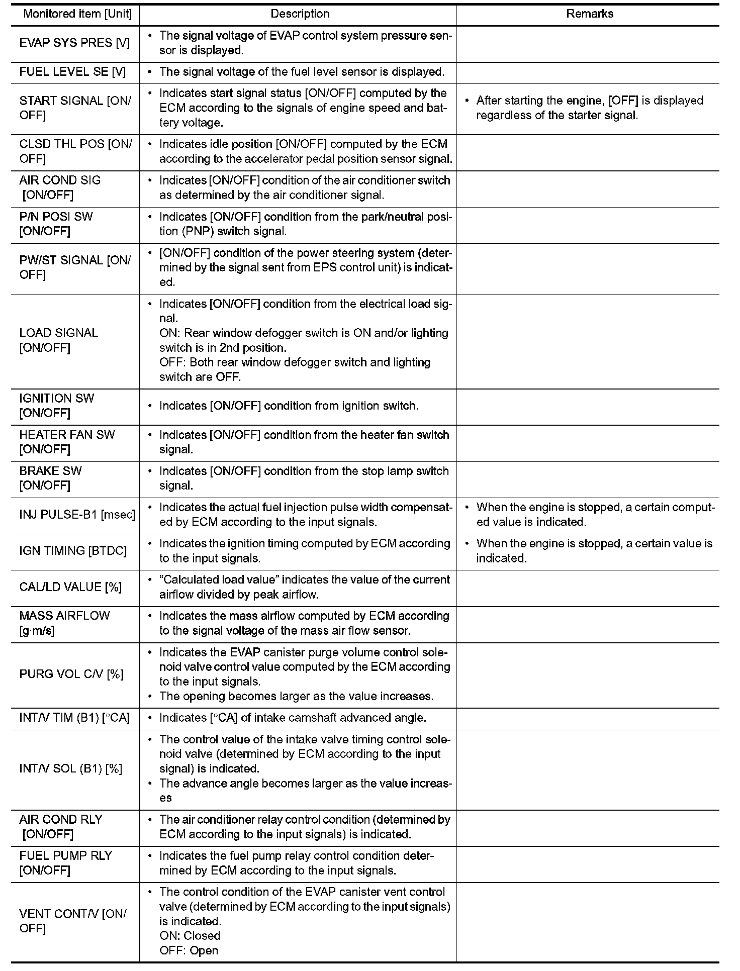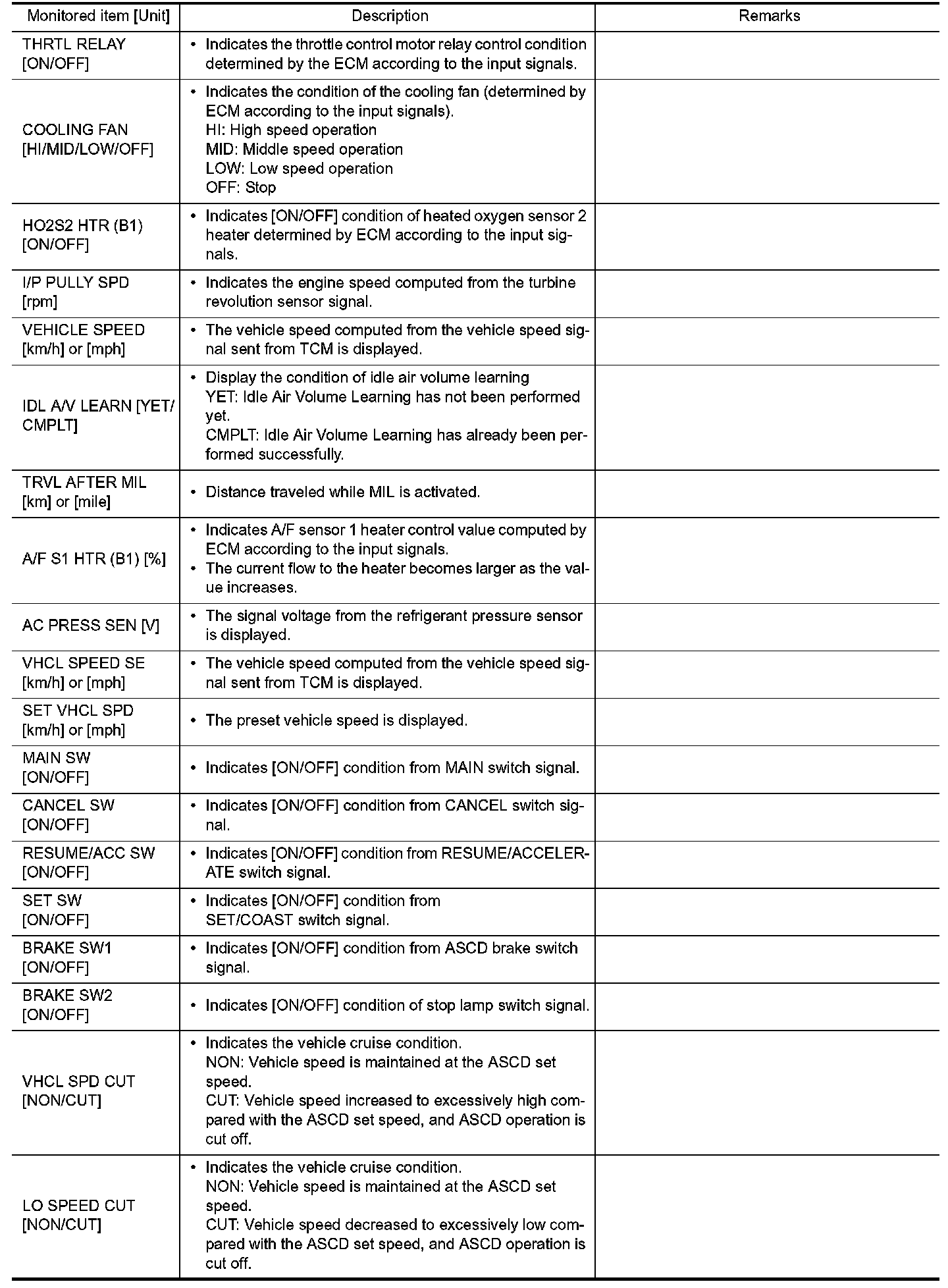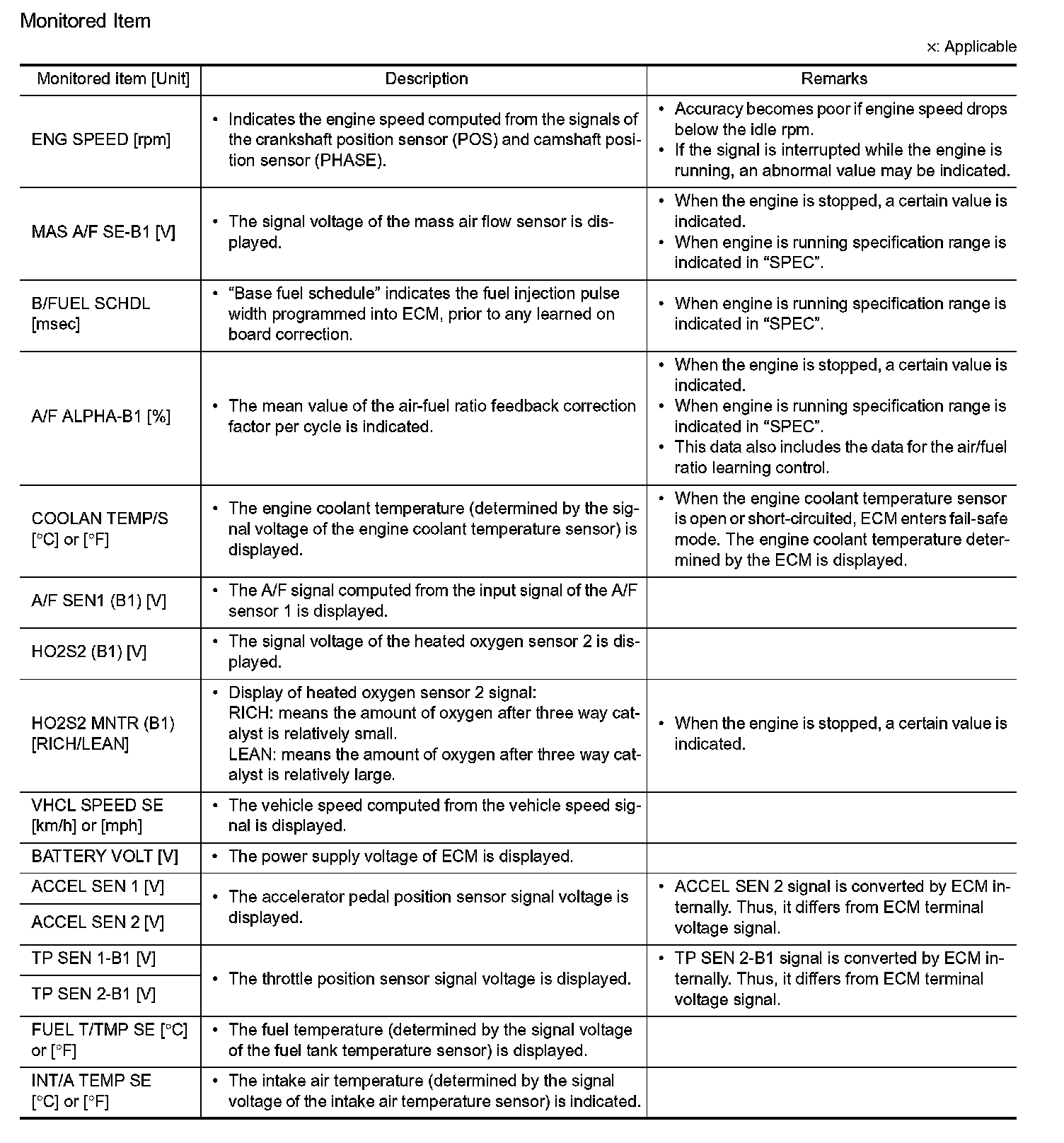 NOTE: Any monitored item that does not match the vehicle being diagnosed is deleted from the display automatically.