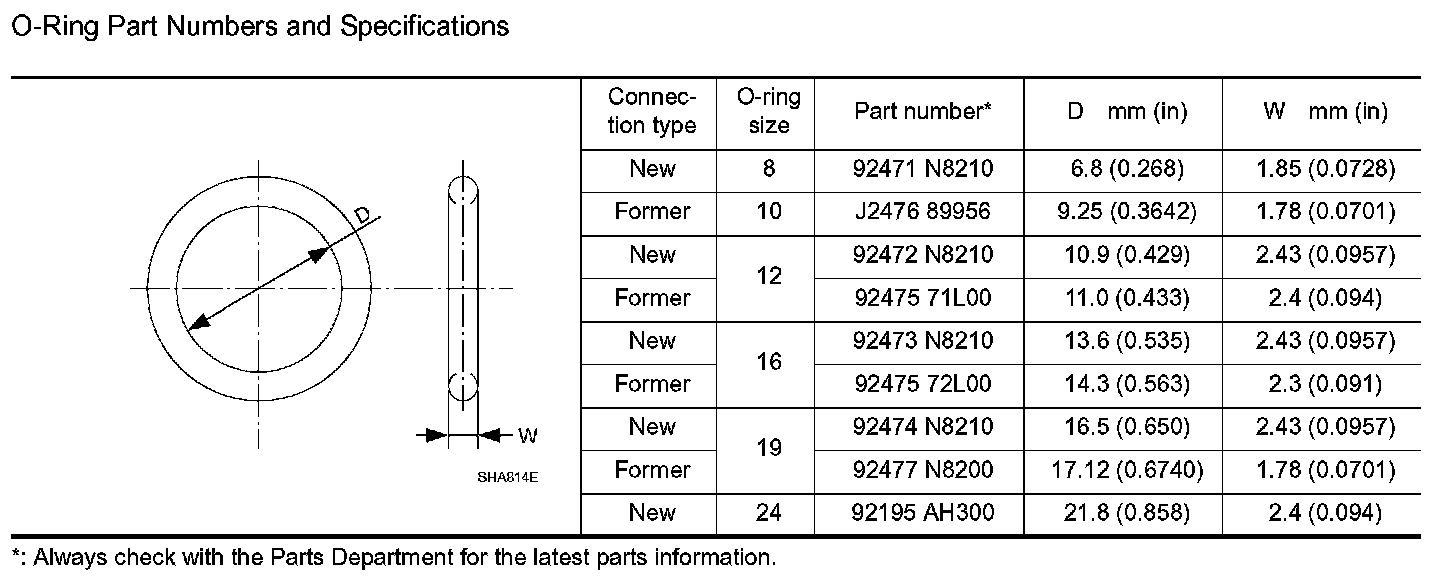 O-Ring Part Numbers and Specifications