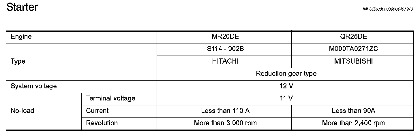 Starter Motor: Specifications