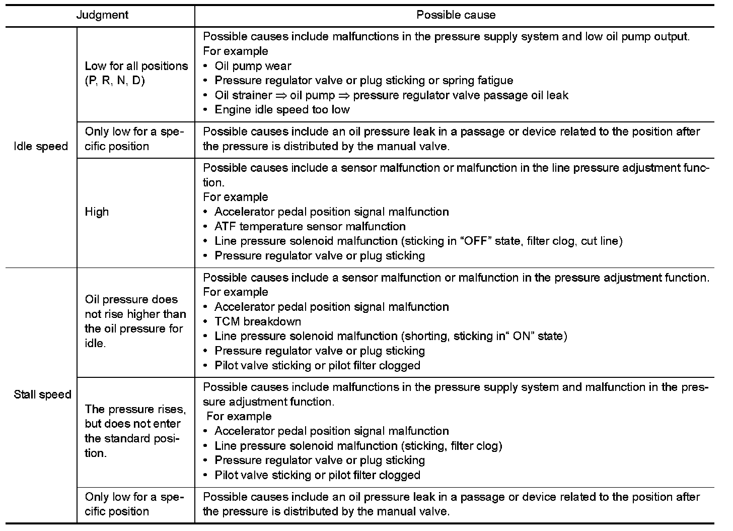 - When measuring the line pressure at the stall speed, refer to "STALL TEST".