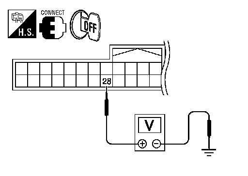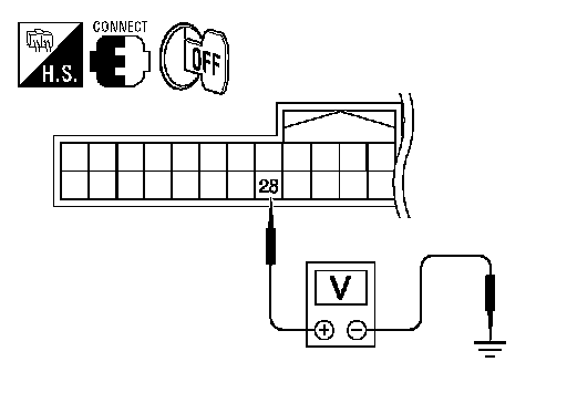 Check voltage between Intelligent Key unit connector terminal 28 and ground.