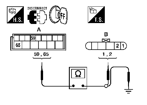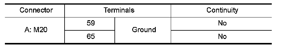 4. Check continuity between BCM connector M20 (A) terminals 59, 65 and body ground.
