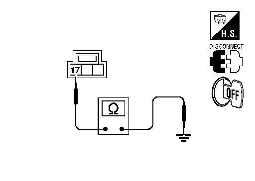 2. Check continuity between main power window and door lock/unlock switch connector D11 terminal 17and ground.