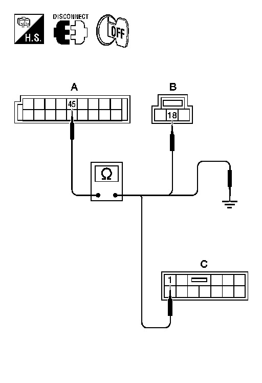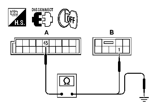 3. Check continuity between BCM connector M19 (A) terminal 45 and ground.
