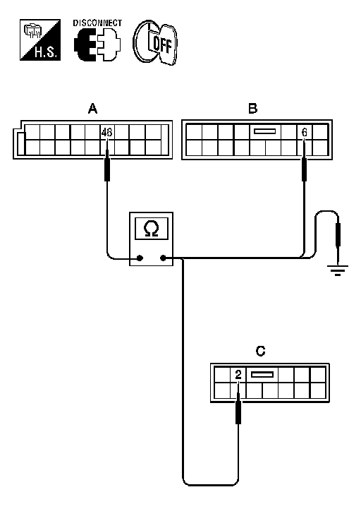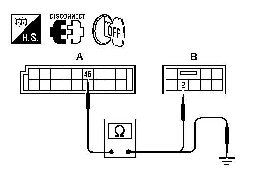 5. Check continuity between BCM connector M19 (A) terminal 46 and ground.