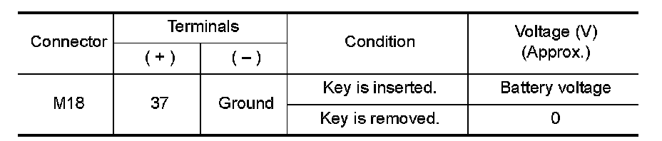 - Harness for open or short between BCM and key switch and ignition knob switch