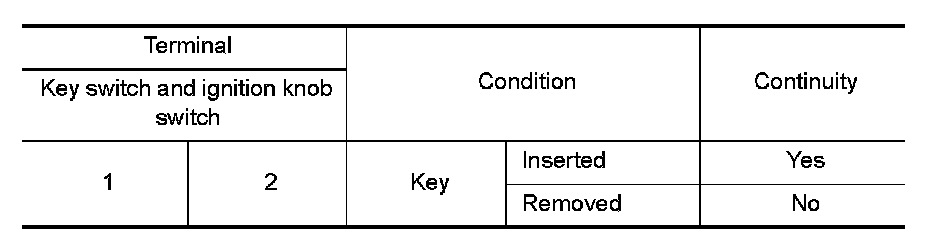 - Harness for open or short between key switch and ignition knob switch and fuse