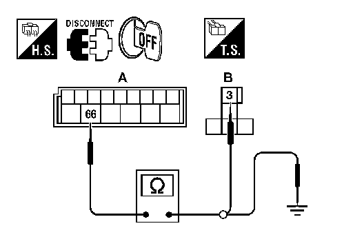 3. Check continuity between BCM connector M20 (A) terminal 66 and body ground.