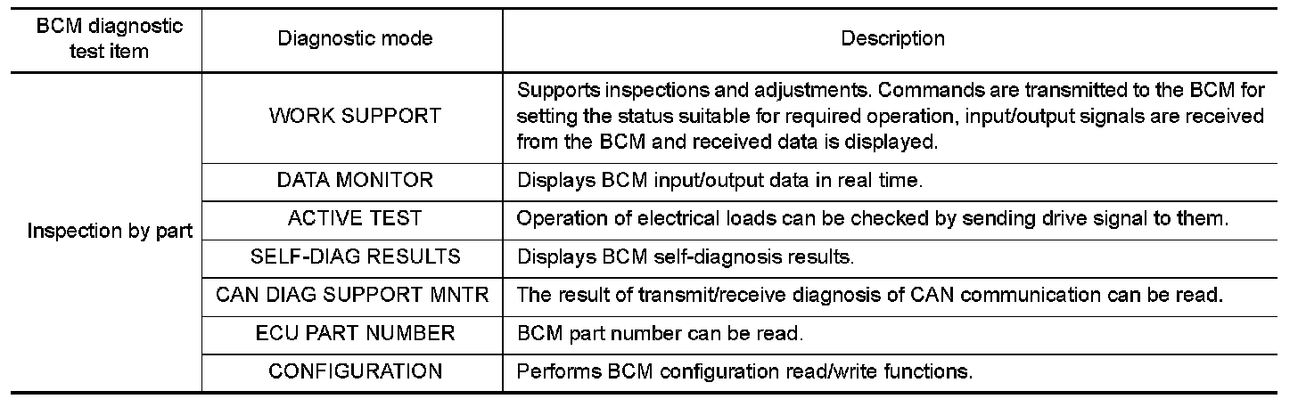 CONSULT-III can display each diagnostic item using the diagnostic test modes shown following.