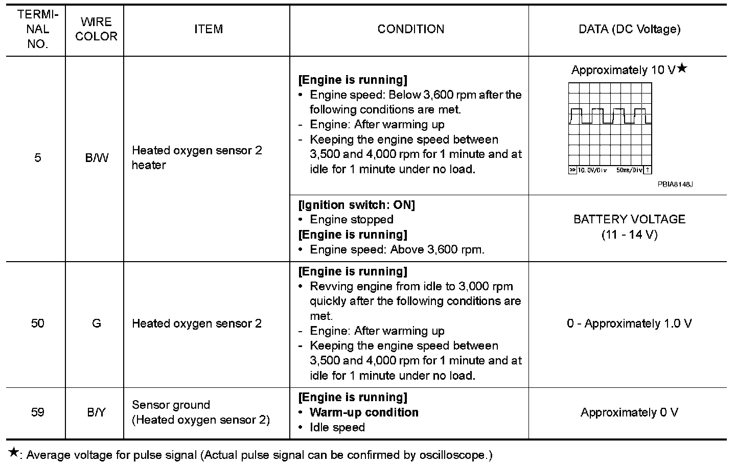 Do not use ECM ground terminals when measuring input/output voltage. Doing so may result in damage to the ECM's transistor. Use a ground other than ECM terminals, such as the ground.