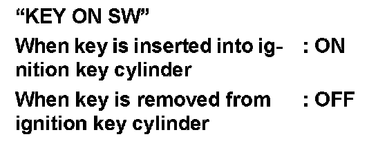 2. With "DATA MONITOR" of "BUZZER", confirm "KEY ON SW" when the key is operated.