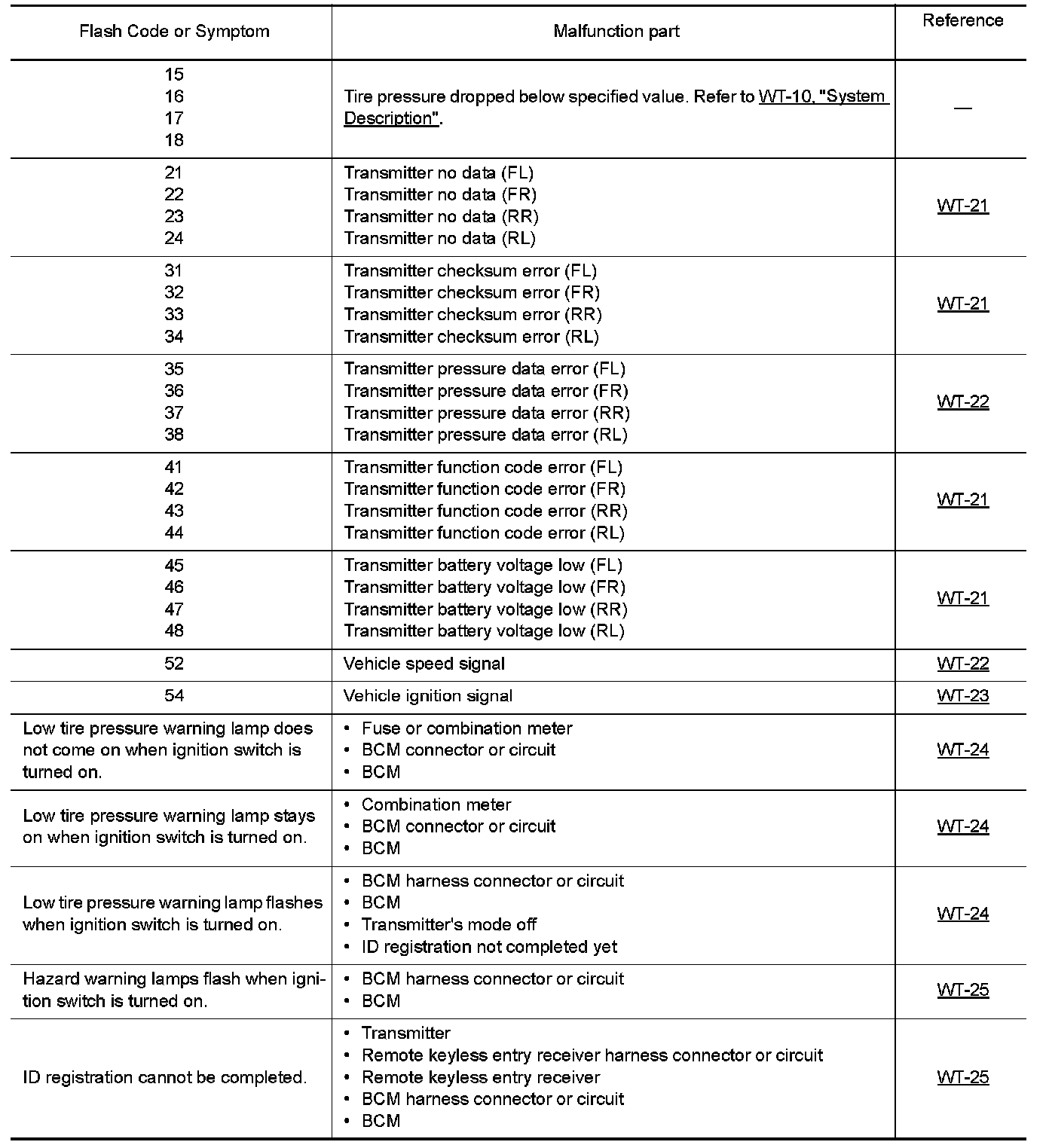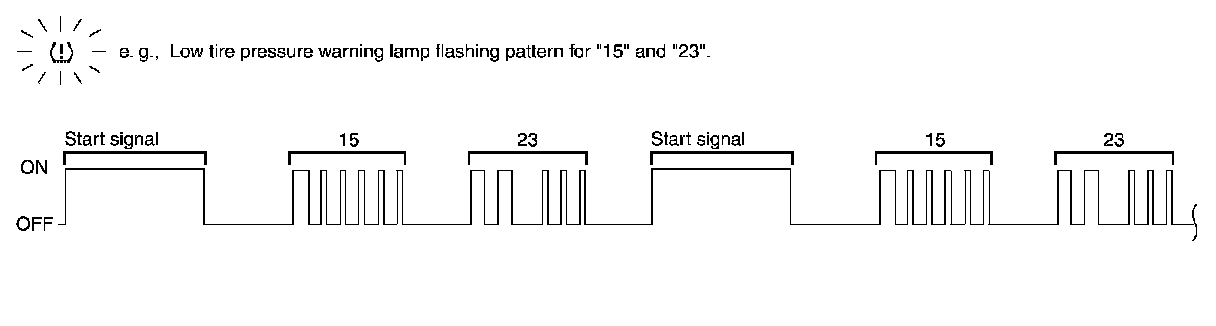 The system is normal when the low tire pressure warning lamp flashes 5 times and continues repeating. Self-diagnosis results are erased automatically by turning the ignition switch "OFF".