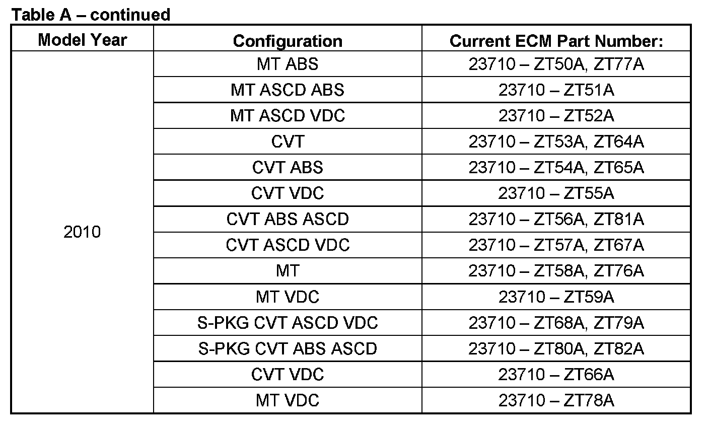 B. Compare the Part Number you wrote down to the numbers in the Current ECM Part Number column in Table A.