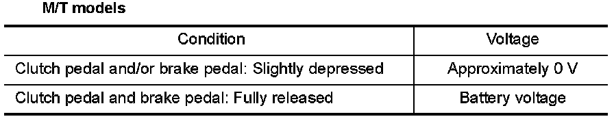 2. Check voltage between ECM terminal 100 and ground under the following conditions.
