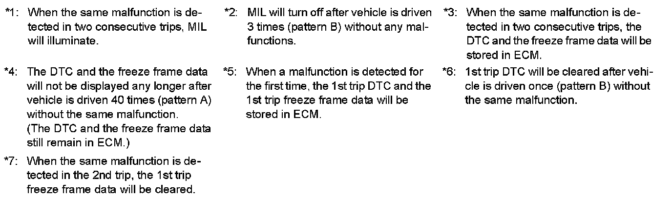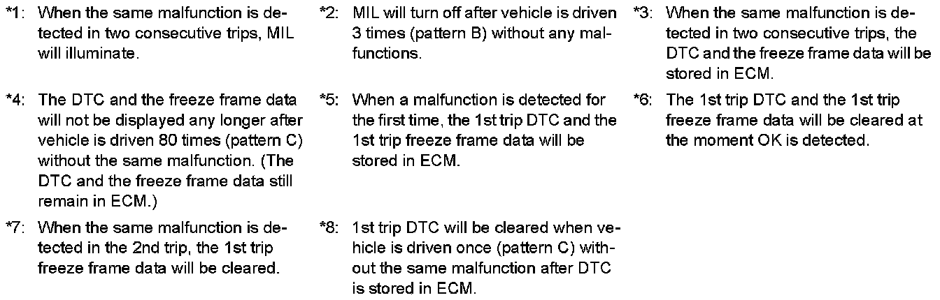- When the same malfunction is detected in two consecutive trips, the DTC and the freeze frame data are stored in the ECM memory, and the MIL will come on. For details, For California.